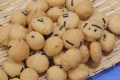 原材料 小麦粉、落花生、砂糖、澱粉、寒梅粉ミックス(澱粉、もち米)、植物油、水飴、いか、食塩、還元澱粉糖化物、米粉、蛋白加水分解物、乾海苔、醤油、膨張剤、調味料(アミノ酸等)、酸化防止剤(V.E、V.C)、(材料の一部に大豆を含む)