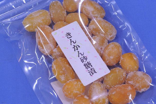 金柑砂糖漬け/きんかんをシロップにじっくりと漬け込みました。爽やかな酸味と苦味が、やさしく甘さを引き立てます。そもままでもおいしくお召しあがりいただけますが、お好みでお湯に何粒か入れていただきますと、きんかん湯として、またお酒に入れていただきますと、きんかん酒として、さらに、おいしくお召しあがりいただけます。